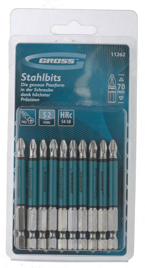Набор бит Ph2x70мм,сталь S2,круглый профиль,10шт//GROSS/11262