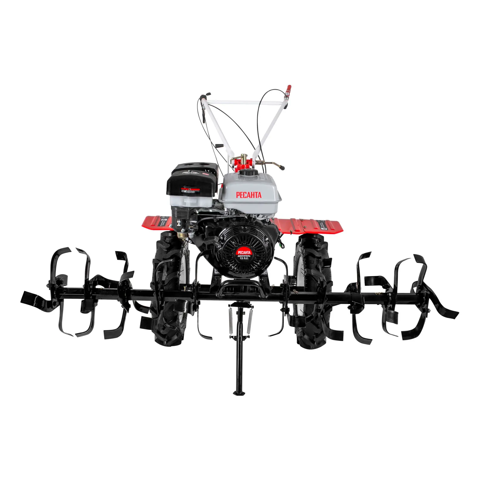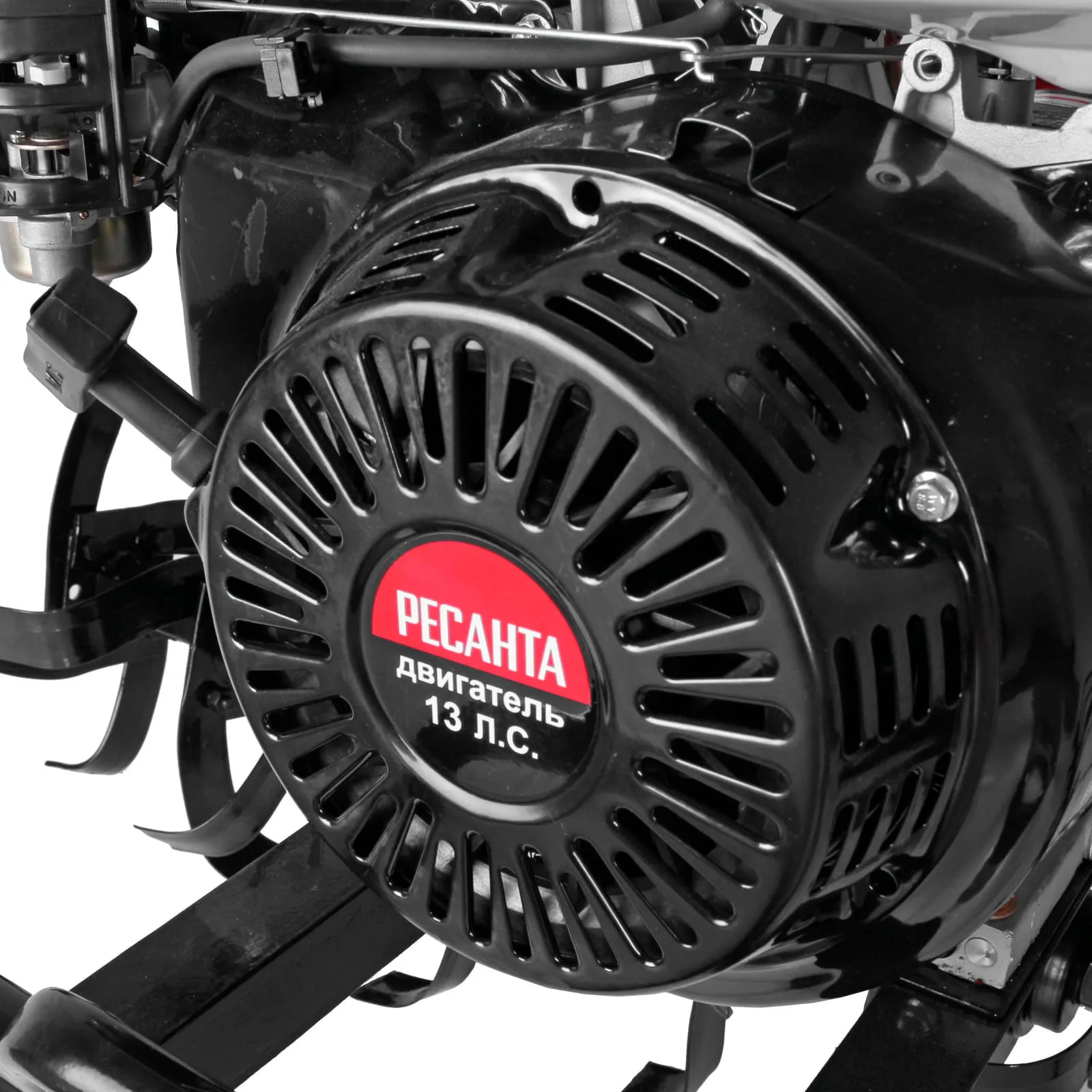 - Мощный двигатель 13 л.с. — уверенная работа на тяжёлых и неразработанных почвах